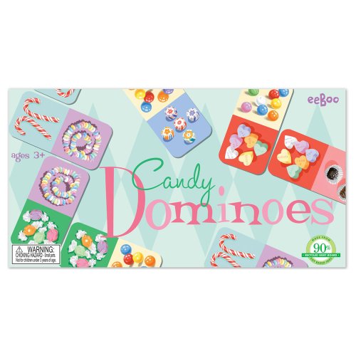 Candy Dominoes are spledid with sweets - conversation hearts, candy canes, candy necklaces, salt water taffy!Gumballs are wild cards. This game is delectable! 2 to 4 players. Includes 28 game pieces. Each game piece measures 2" x 4". Box is 8.5" (L) x 4.5" (H) x 1.75" (D). Ages 3+ Read more...